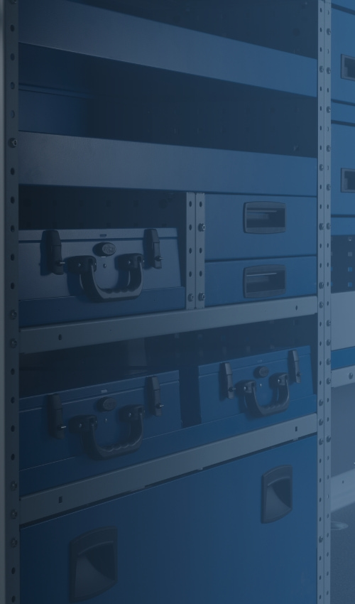 muebles para el compartimento de carga: estanterías, bancos de trabajo, cajones, maletines y contenedores transparentes;