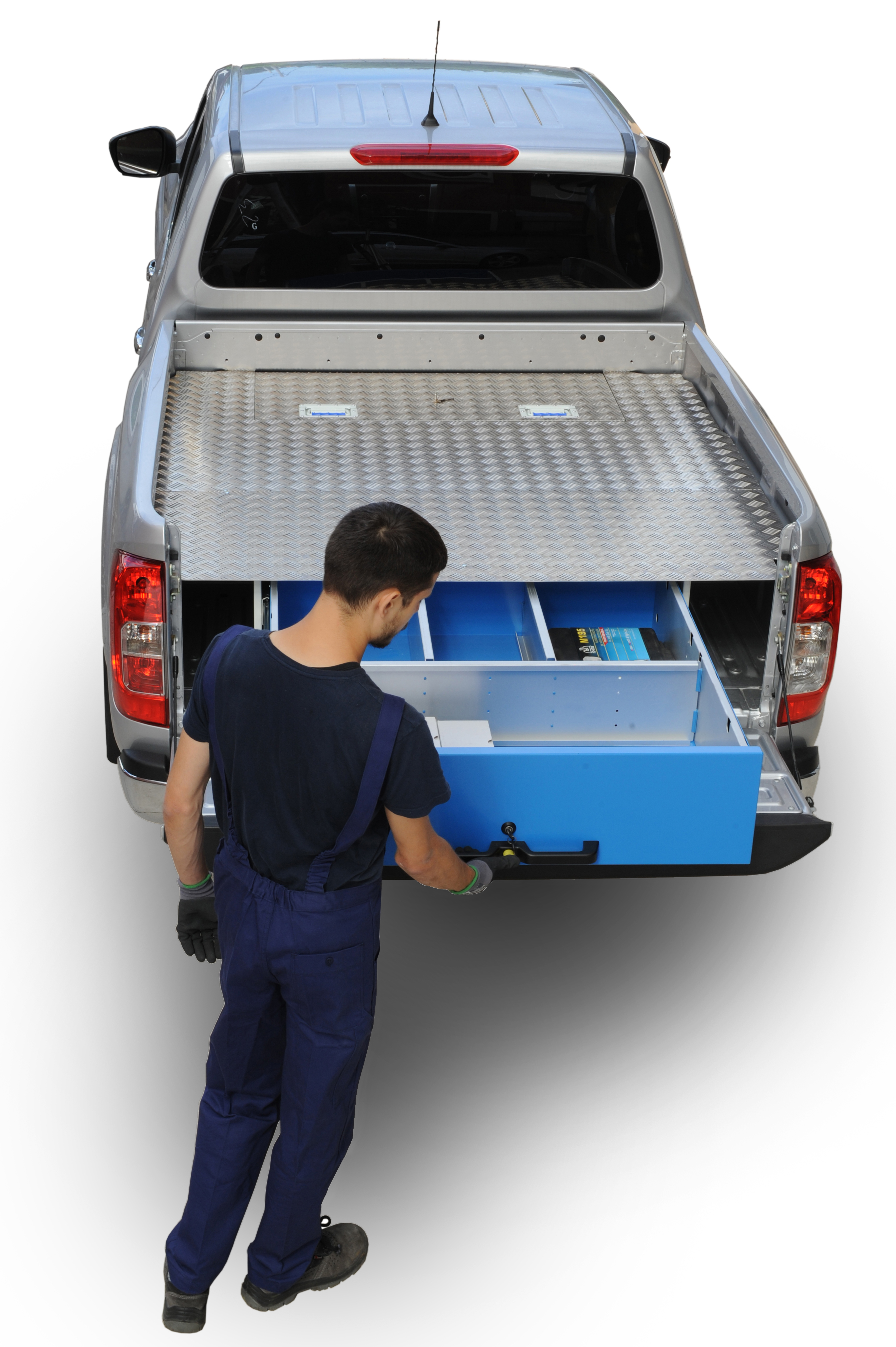 En Syncro Chile encontrarás una solución para cada furgoneta, e incluso un vehículo peculiar como el pick up. Mira en esta página un ejemplo de cajonera infraplataforma con Pick Up montada sobre guías de bola y con sistema de bloqueo en varias posiciones.