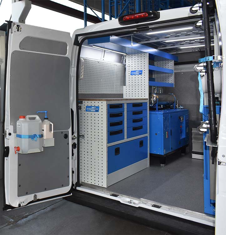 ¿Tienes una furgoneta de dimensiones medianas-pequeñas pero no quieres que falten generador y compresor? Los técnicos de Syncro Chile te aconsejarán, con toda probabilidad, instalar una máquina combinada “generador/compresor”, que ocupa poco espacio y tiene una importante potencia, llegando a producir 8,5 kW y 800 lt/minuto de aire comprimido. Si no tienes problemas de espacio y de límite de potencia, podrás optar por dos máquinas separadas, con generadores de hasta 13 kW y compresores de 1000 lt/min. La alimentación puede ser a gasolina o a diésel. En caso de necesidades especiales, es posible conectar la máquina directamente al motor de la furgoneta, aprovechando plenamente la potencia.